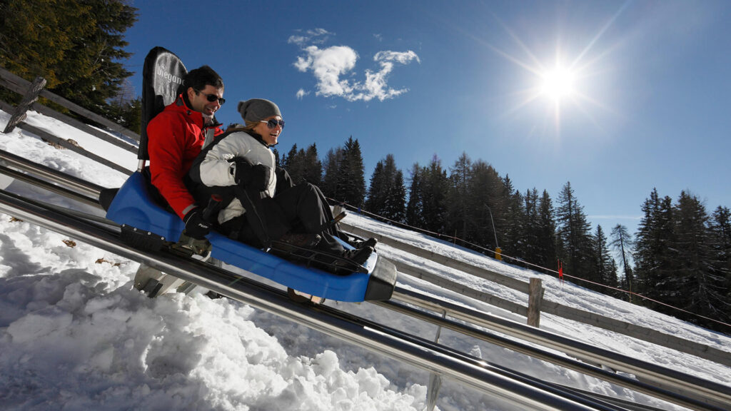 Una giornata sulla neve a Merano 2000 è un’esperienza speciale per grandi e piccini, indipendentemente dal vostro luogo di soggiorno. Il soleggiato comprensorio sciistico sopra Merano offre piste perfettamente preparate, rifugi accoglienti e sentieri panoramici per le vostre escursioni invernali. Oltre agli appassionati di sci e snowboard, anche gli amanti dello slittino hanno di che sbizzarrirsi: non solo sulla pista di slittino naturale, ma anche sulla pista di slittino su rotaie Alpin Bob. Fissati in modo sicuro, sfrecciate tra curve e discese: un divertimento per tutta la famiglia.