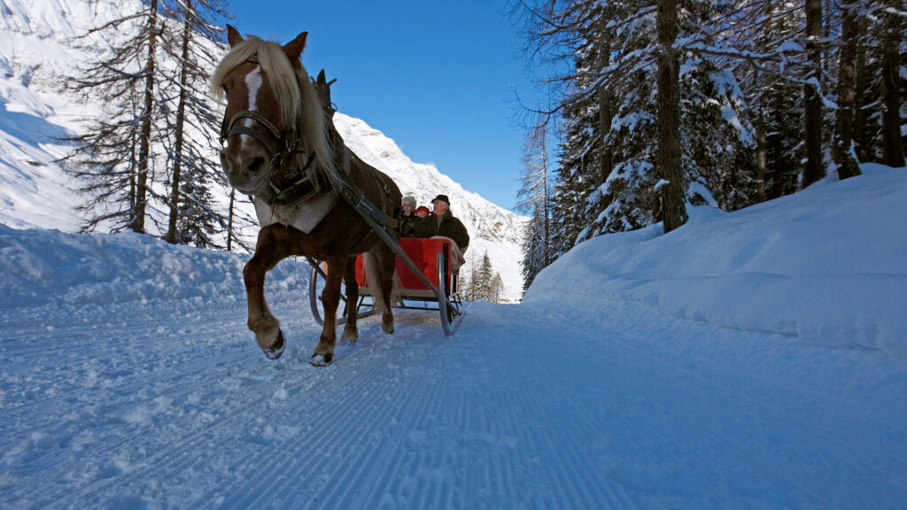 La giornata odierna appartiene ai momenti speciali dell’inverno, lontano dalle grandi stazioni sciistiche. Un’escursione con le racchette da neve sul Monte San Vigilio conduce attraverso boschi tranquilli e panorami a 360 gradi. Anche la zona dell’Alta Val di Non si distingue per i suoi sentieri in mezzo alla natura e al paesaggio incontaminato. Un’escursione nella Val Senales colpisce per il panorama dei ghiacciai e per i soleggiati sentieri d’alta quota, mentre i paesi più piccoli come Avelengo o Verano invitano a facili escursioni invernali in luoghi baciati dal sole. Particolarmente romantico è il giro in slitta trainata da cavalli a Plan. Se preferite un ritmo più tranquillo, scegliete la Passeggiata d’Inverno di Merano, che costeggia una rigogliosa vegetazione mediterranea sempreverde. Anche un pomeriggio di pattinaggio sul ghiaccio vi farà immergere ancora di più nella nostalgica atmosfera invernale. Il sesto giorno diventa così un mix riuscito di natura, romanticismo e relax.